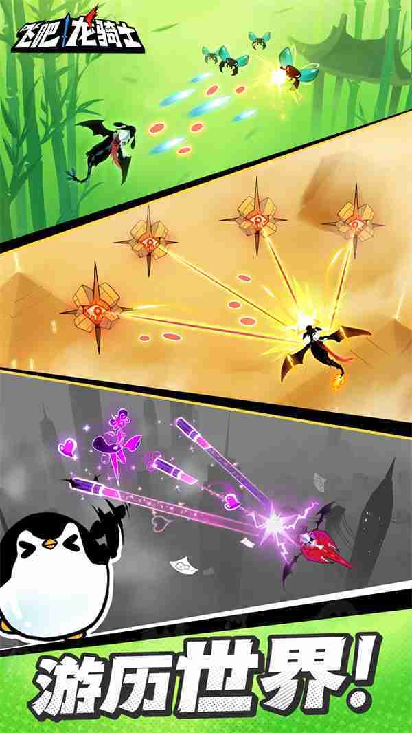《飞吧龙骑士》是一款集合了飞行弹幕射击、、Roguelike要素和挂机养成的休闲手游,,极具创意的吞食子弹反击玩法,,,突破传统飞行射击的刻板限制,,,,带来了独特的爽快清屏体验。。。