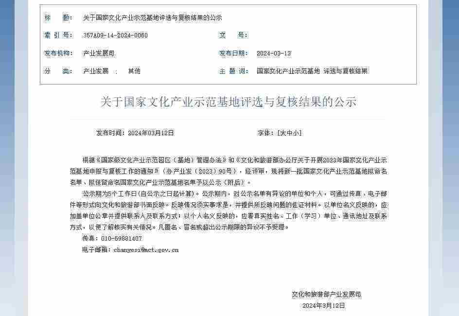 新一批国家文化产业示范基地公示,,35273成功入围
