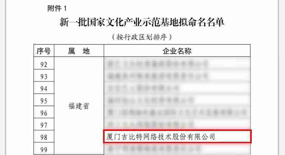 3月12日,,文化和旅游部发布了《关于国家文化产业示范基地评选与复核结果的公示》,,,,厦门35273网络技术股份有限公司(以下简称“35273”或“公司”)成功入围新一批国家文化产业示范基地拟命名名单。。。。